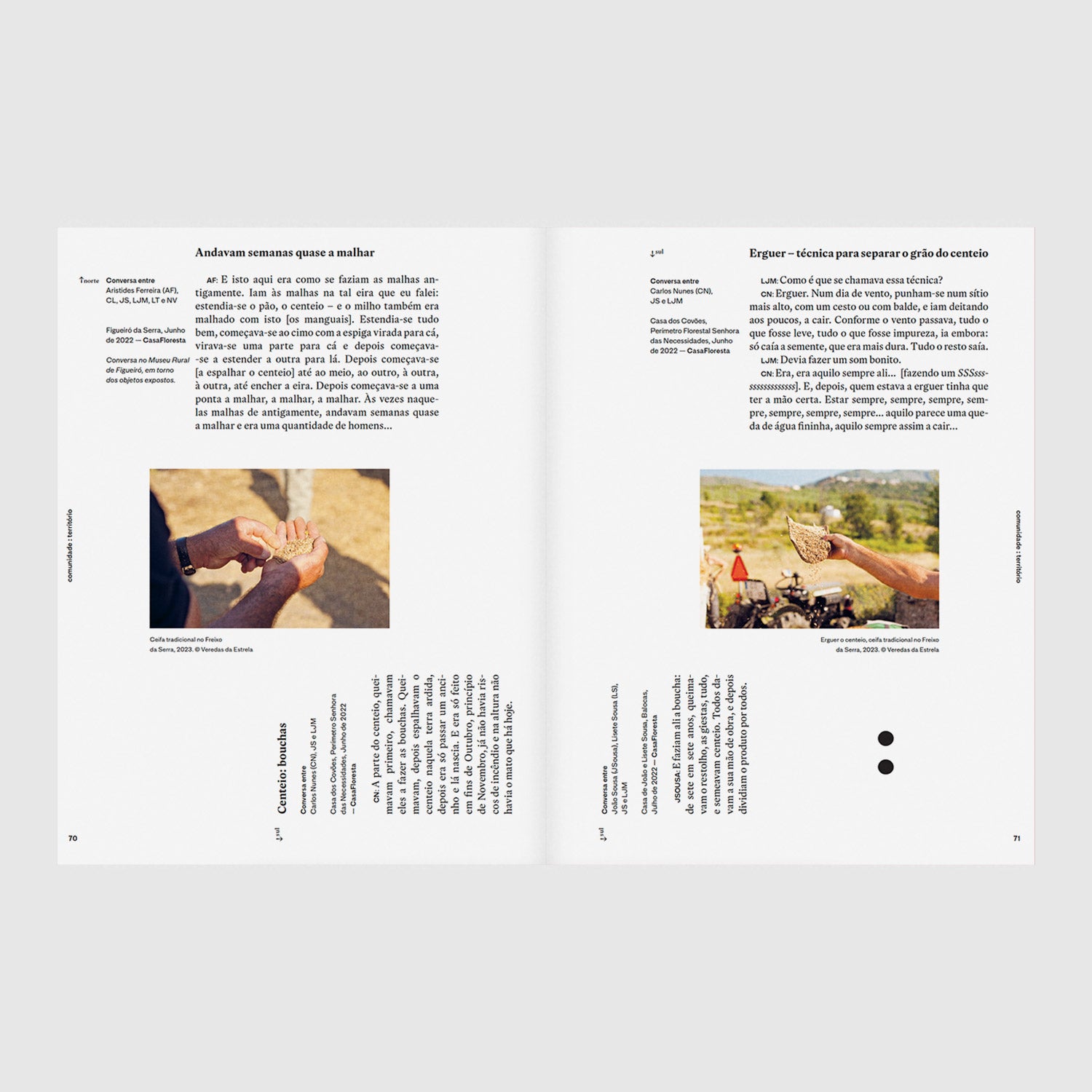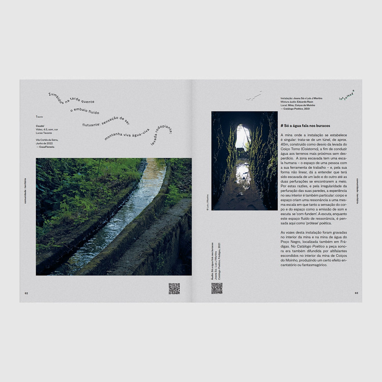 Comunidade : floresta - Vozes comunicantes para o futuro de um território nasce da escuta atenta e continuada do território da Serra da Estrela e das suas comunidades. Partindo de três projetos anteriores do coletivo à escuta, realizados no Sul e no Norte desse território — Catálogo Poético (2020-21), CasaFloresta (2022-23) e Folha Volante (2024) — criam-se novas relações entre diversos materiais neles recolhidos e contribuições do coletivo e de diversos colaboradores para este livro abrindo-se o espectro de ressonância e reflexão destes projetos. Através de uma linguagem polifónica e multidimensional — que cruza transcrições de conversas com linguagens literárias, científicas ou académicas, poéticas e pseudopoéticas — o livro reflete sobre o passado, presente e futuro da (des)floresta e das comunidades que com ela convivem. Com ligações para vídeos, peças sonoras e publicações dos projetos anteriores, a reflexão expande-se também além do formato físico do livro.